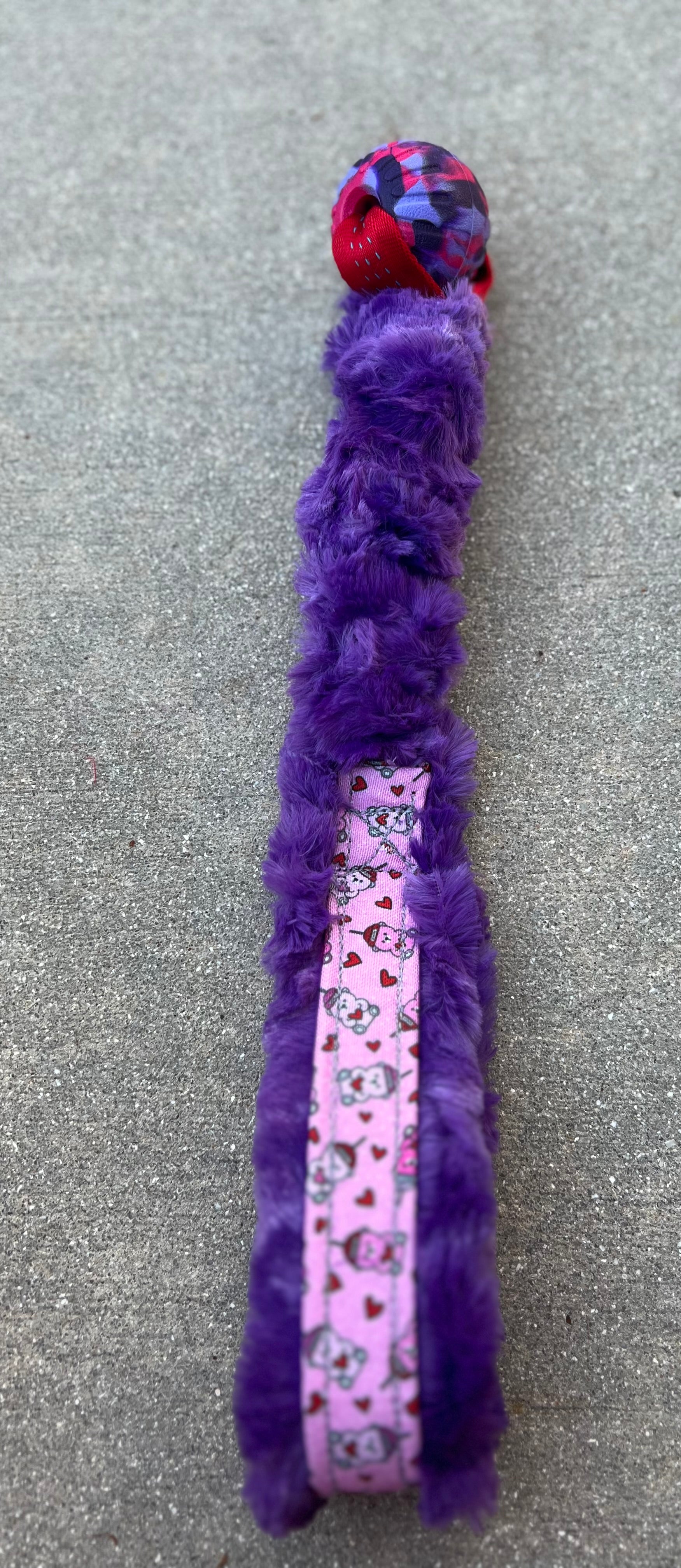 small foam ball with bungee hidden under Minky fabric